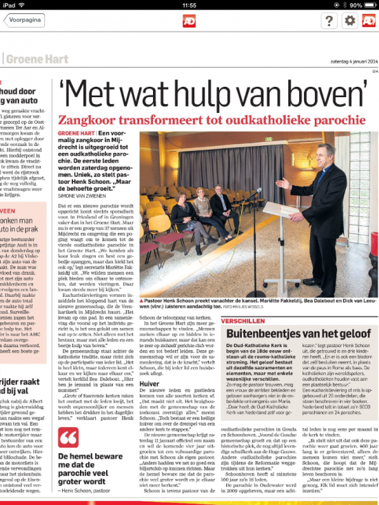 Op zaterdag 11 januari a.s. is het zover: tijdens de viering in de Veenhartkerk, die begint om 19.00 uur, zal een aantal mensen toetreden als (gast) lid van de kerk en wordt offcieel het startsein van de nieuwe Statie gegeven. Pastoor Henk Schoon zal formeel de pastorale zorg krijgen van de nieuwe parochie en als zodanig worden geinstalleerd door de bisschop van Haarlem, die voorgaat in de eucharistie.